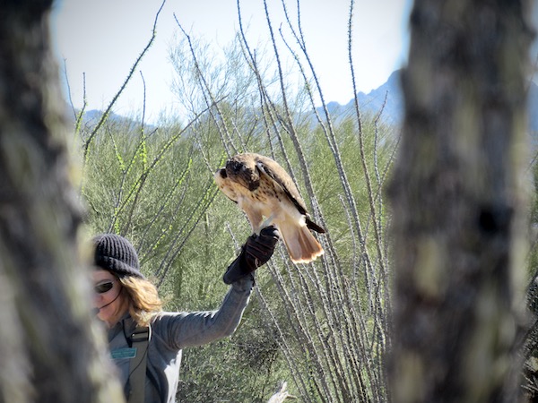 I am at the “Raptor Free Fight!” exhibition at the Arizona-Sonora Desert Museum, just west of Tucson. Other than being repeatedly shooshed, this is like no museum I’ve ever visited. The Sonoran desert comes alive here – a living, breathing ecosystem. The amazing birds of prey show takes place at 10 am and 2 pm daily from October 29 to February 29.